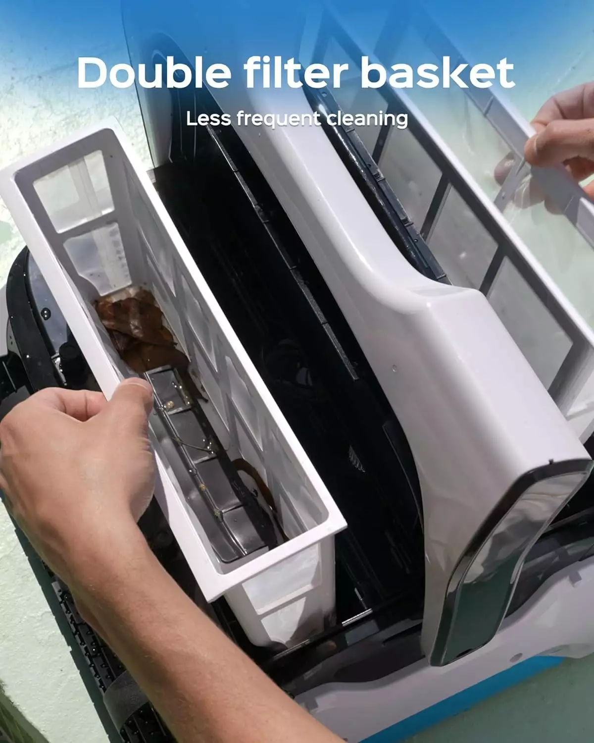 - Large Dual Filters: Capture and retain both large debris and fine particles with a 180??m filtration system.