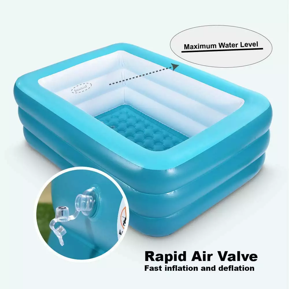 - Fast Valve Inflation and Deflation: With a fast valve. you can fill the kiddie pool with air in a matter of minutes. The inflatable kids pool is quickly deflated with a double lock valve.