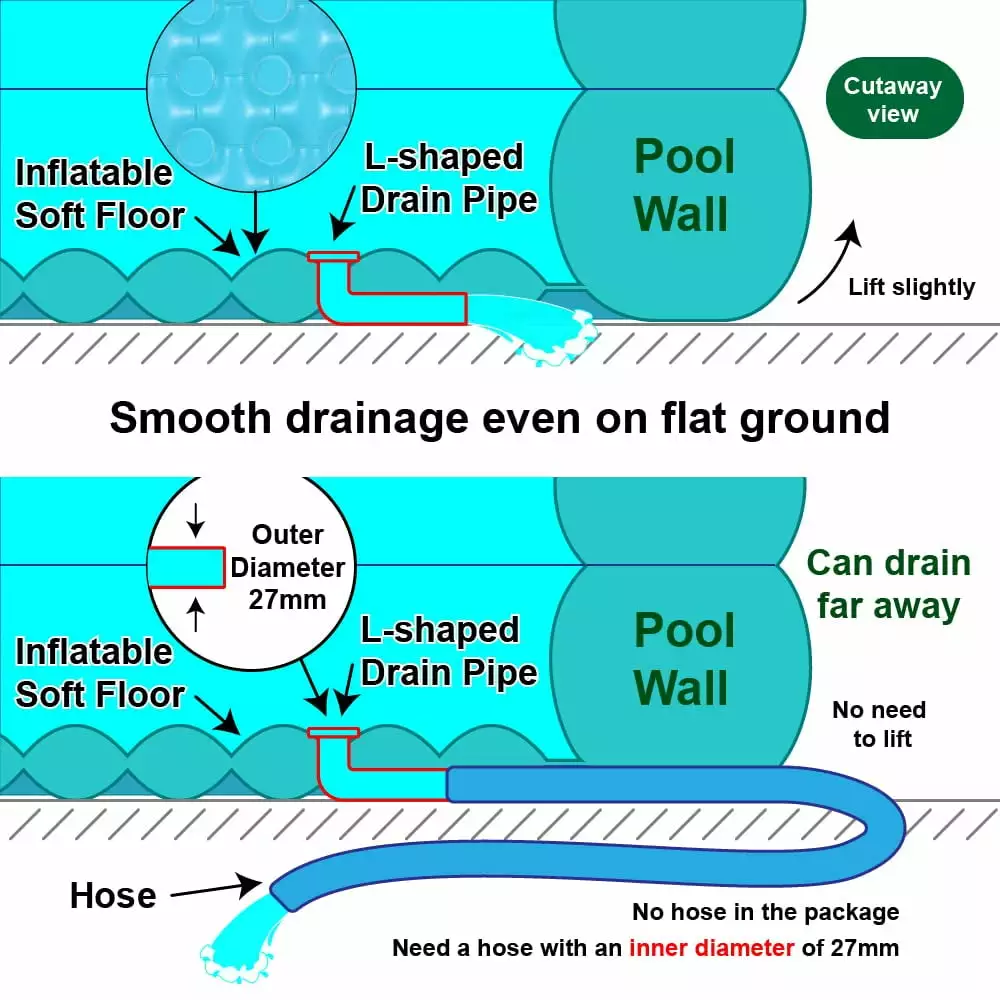 - Easy to Drain and Fast: Built-in drainage pipe. and can be connected with conventional hoses to drain water to farther places. After enjoying the blow-up pool. simply open the drain plug to easily drain the water from this swimming pool for quick and easy access. Easy to store and carry. it is a must-have for summer backyard fun.