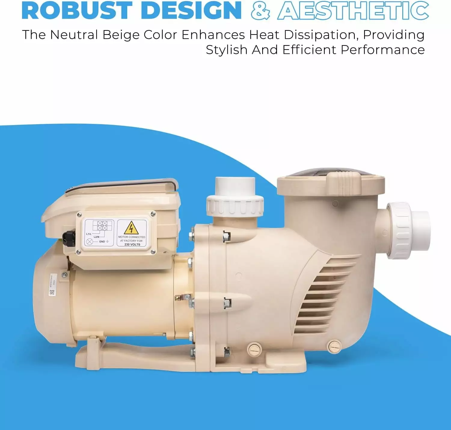 - Powerful High Flow: The pool pump motor delivers an extra-large water flow. ensuring efficient water circulation for a clean and safe swimming experience. Its stable operation produces ultra-low noise. making it virtually unnoticeable.