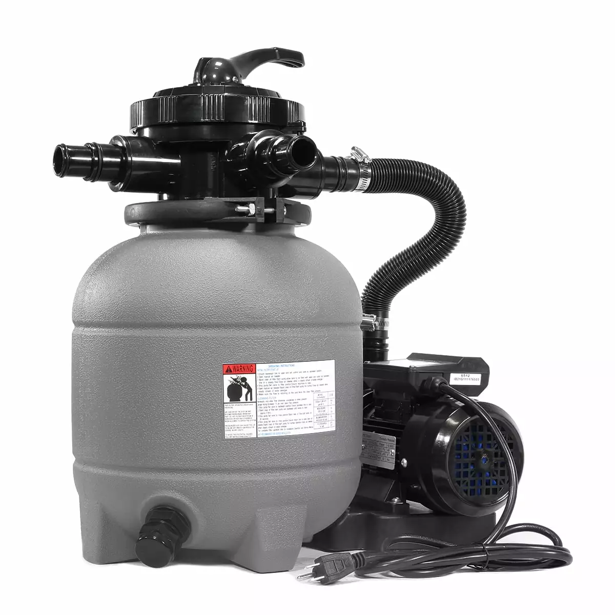 XtremepowerUS 12 Sand Filter Combo for above ground pools. Fully integrated sand filter. pump pressure valve. and stand. 2400 gallons per hour pumping capacity. 43 pounds per hour sand pumping capacity. Just add the filter media (sold separately) and hook up the hoses. plug it in and it starts filtering immediately