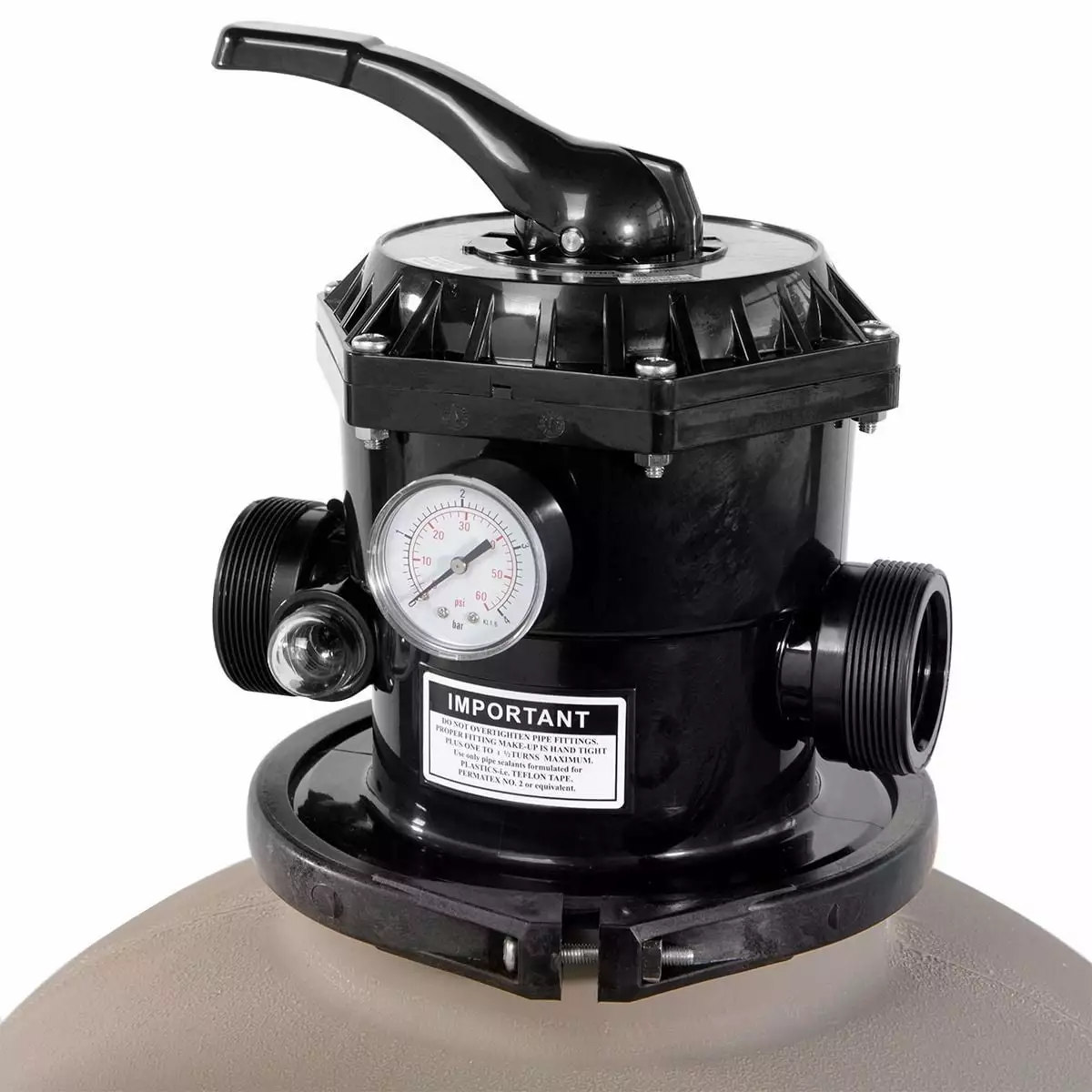 This pool sand filter is ideal for most in ground and above ground pools for filtering sand and clearing the water. It is able to apply for several water feature including fish ponds. fountains. water gardens. It features flange clamp design providing 360 degree rotation of valve for simplify plumbing.