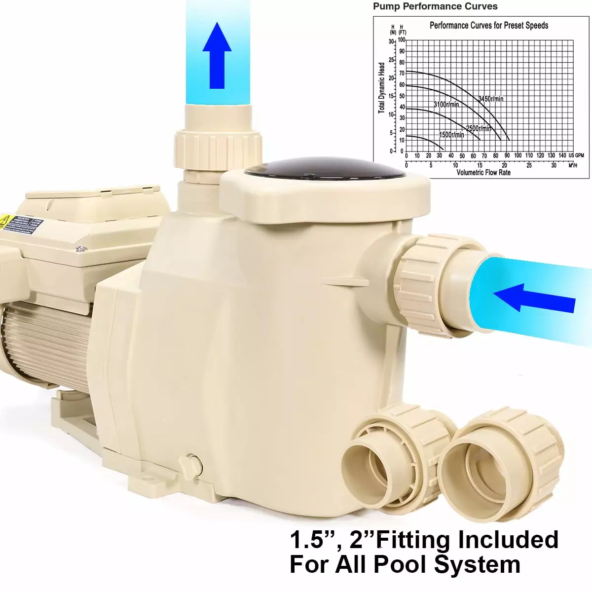 | Features | Timer Function. Variable Speed Pump. Large Strainer Basket. 1.5HP Motor. Energy Star Certified. Design for InGround Pool. Fitting Set Included |