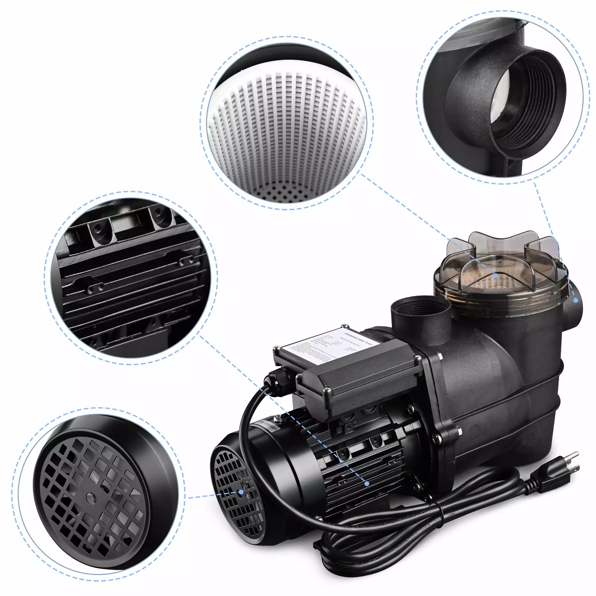 – Please clean the strainer frequently to ensure the pool pump could work efficiently.
