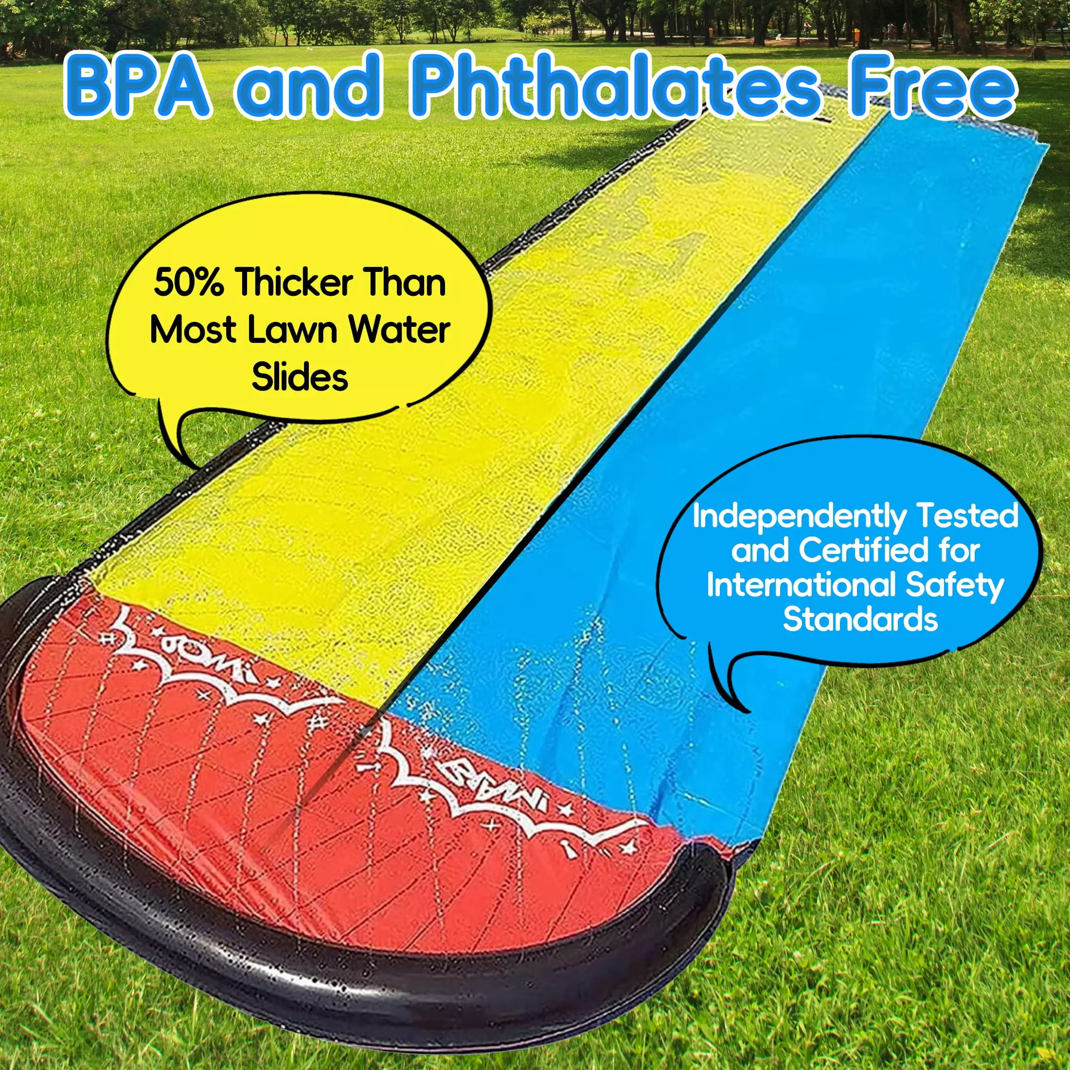 - ??CHILD-SAFE??Safety is always a top priority when it comes to children’s toys. The HioHa lawn water slide for kids backyard has been thoroughly tested and certified for child safety. so parents can have peace of mind knowing that their children are safe while playing.