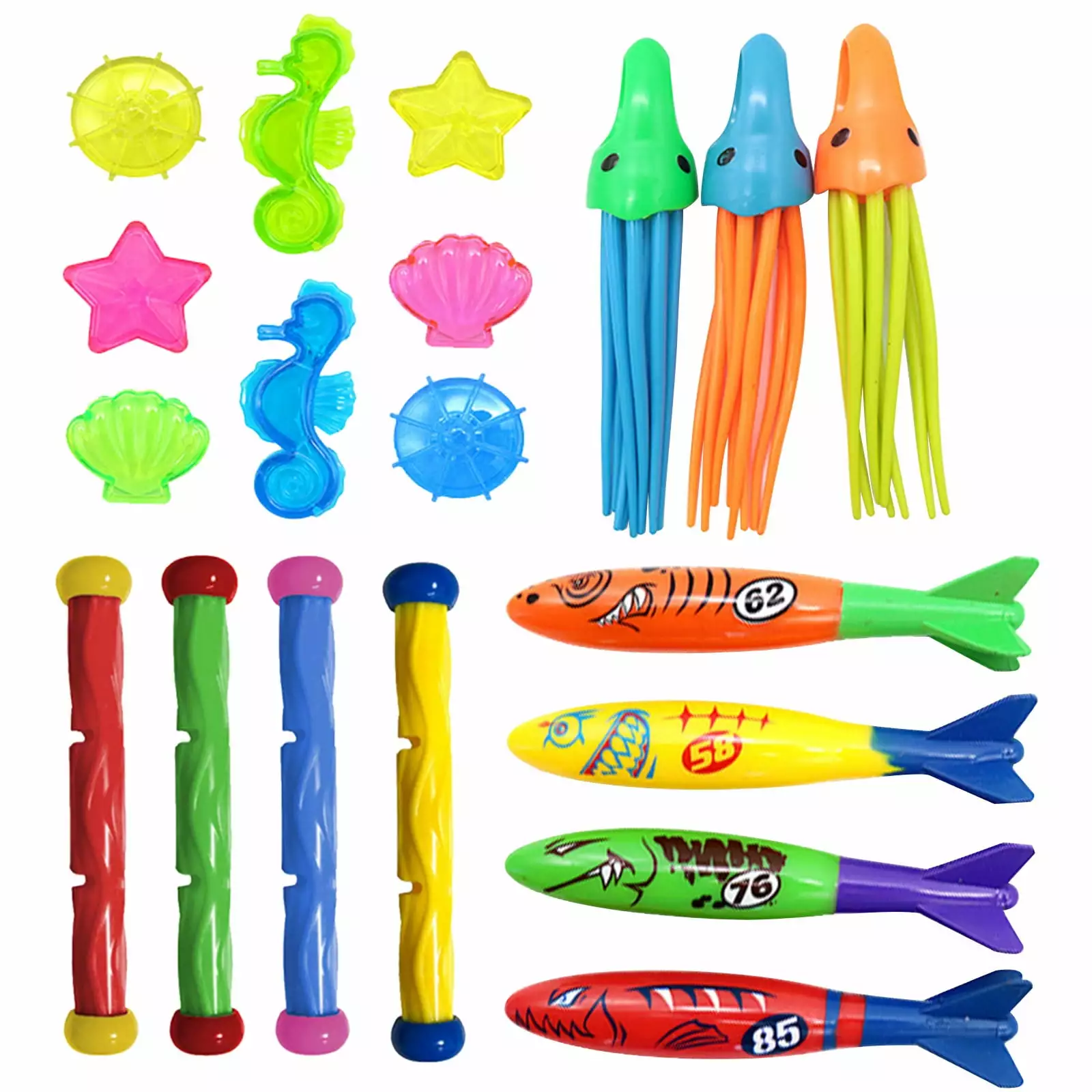 ZToonmas Swimming Pool Diving Toys For Kids Sinking Toys Set Underwater Variety Diving 19PC